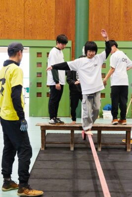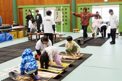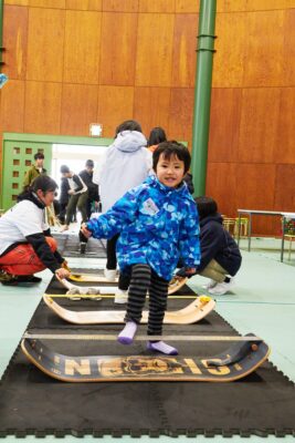 スノーボードプログラムに参加していない子どもたちも参加することでき、沢山の子どもたちにスラックラインを楽しんでもらえました。