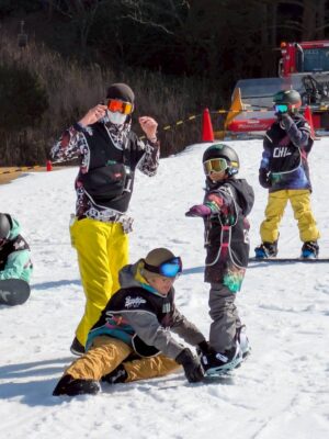 不安とワクワクが程よく混ざり合う中でスノーボードプログラムがスタートしましたが、朝一番の子どもたちの元気な挨拶で緊張がほぐれました。
