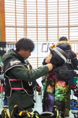 ウェアとブーツを履き終わりゴーグルを選ぶ際、子どもたちがテーブルに置いてあるゴーグルを楽しそうに選んでいる姿は微笑ましかったです。