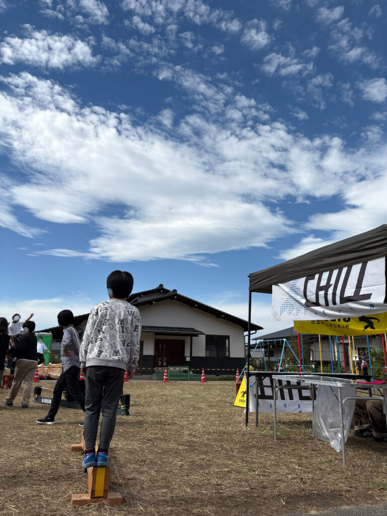 秋晴れの中のスラックライン体験、笑顔があふれる楽しいひと時を共有することが出来ました。