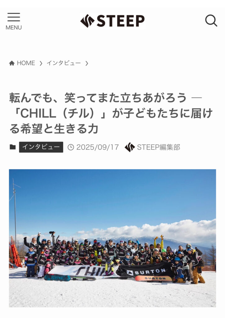 スノーボードやスキーなどの雪山滑走についてアップデートしているWEBメディア STEEP にCHILL小倉代表のインタビュー記事がアップされています。
